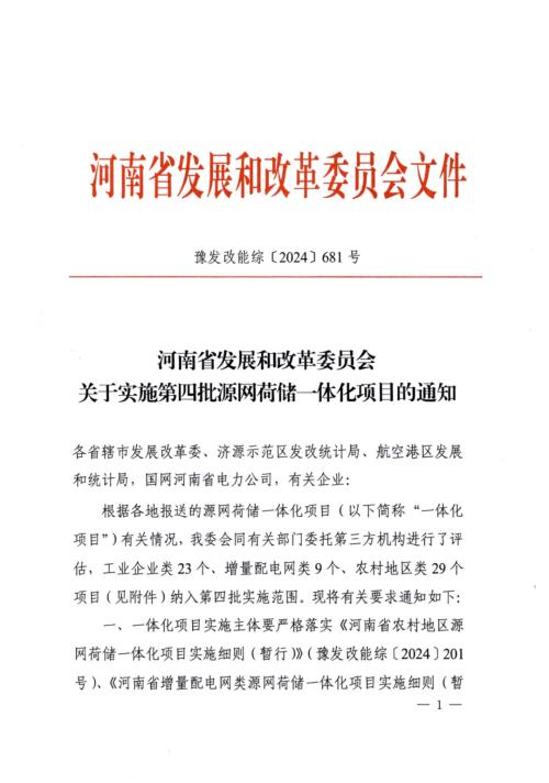 光伏头条(微信号:PV-2005)获悉,11月4日,河南省发展和改革委员会发布《关于实施第四批源网荷储一体化项目的通知》。