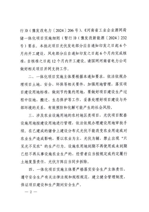 本批次项目光伏发电部分应自通知印发之日起6个月内开工建设,风电部分应自通知印发之日起6个月内完成核准,自核准之日起12个月内开工建设。