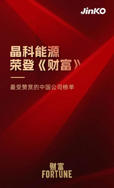 近日,《财富》最受赞赏的中国公司榜单正式发布,晶科能源凭借在管理、人才吸引力、产品及服务、社会责任以及全球化等综合实力的优异表现,在4万多名企业中脱颖而出,荣登该榜单行业明星榜,展现了晶科在中国企业群体的卓越“软实力”,以及在可持续发展和社会责任方面的持续贡献。