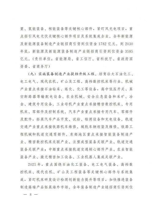 2025年,围绕加快建设发电机、齿轮箱、逆变器、液压装置、氢能装备、核能装备等关键核心部件,紧盯风光电项目,重点招引风电光伏关键核心部件项目及系统集成企业。全年新能源及新能源装备制造产业链招商引资到位资金1782亿元。到2030年底,新能源及新能源装备制造产业链招商引资到位资金3585亿元。