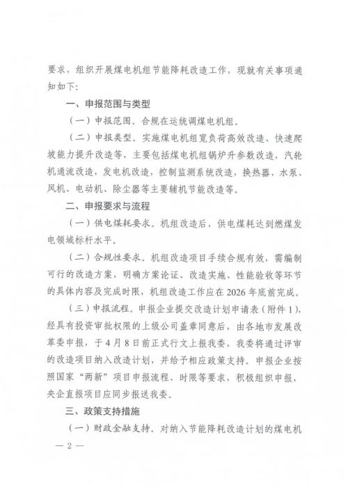 3月27日,河南省发展和改革委员会发布关于组织开展煤电机组节能降耗改造工作的通知,要求在运煤电机组进行改造。