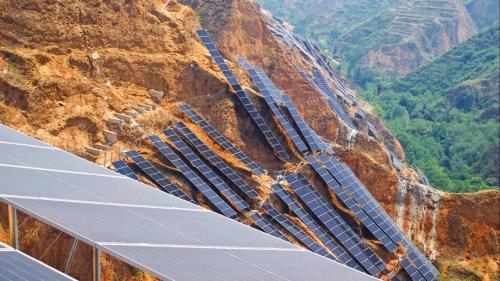 该项目位于山西省运城市闻喜县,总装机容量10万千瓦,施工区域地形复杂,沟壑交错,60度陡峭斜坡占比70%以上,施工面临极大的挑战。项目建设团队攻坚克难,创造性地采用“人工+小机械”的施工模式,解决了复杂地形柔性支架的施工难题,运用重载无人机解决了光伏区物料运输难题。项目的竣工将柔性支架跨越空间大、节约建设用地、综合成本低的显著优势充分发挥。