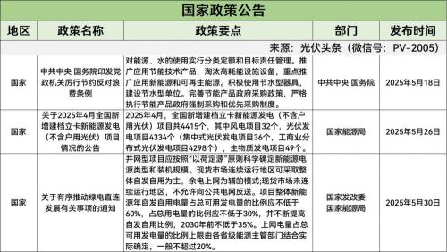 5月份,涉及光伏规划/指导意见政策4条。