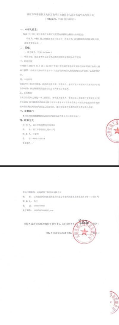 5月30日,云南省丽江市华坪县新文光伏发电项目社会投资人公开优选中选结果公告发布。
