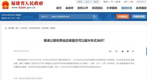 日前,福建省发改委回复用户关于高速公路收费站边坡是否可以建分布式光伏的问题。