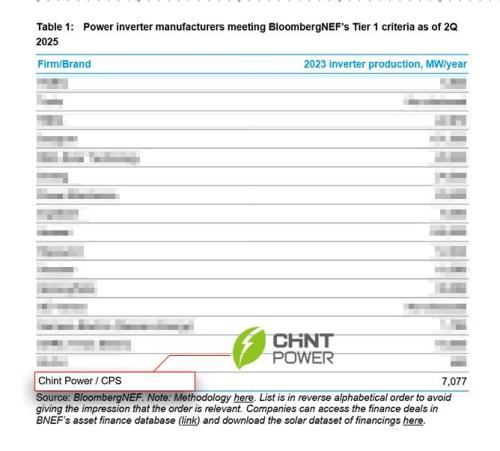 (BNEF Tier 1 Power Inverter 2Q 2025)