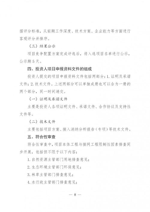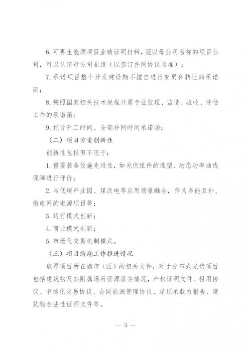 3.由旗发展改革委指导组织企业报送项目方案,并初步筛选符合条件的项目报送至市能源局。市能源局委托第三方专业机构开展项目评审,重点审查开发企业资质、选址条件、电网接入可行性、自用消纳能力、建设进度安排等关键因素。