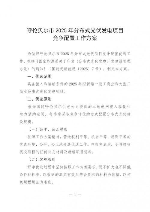 3.呼伦贝尔市2025年分布式光伏发电项目竞争配置工作方案