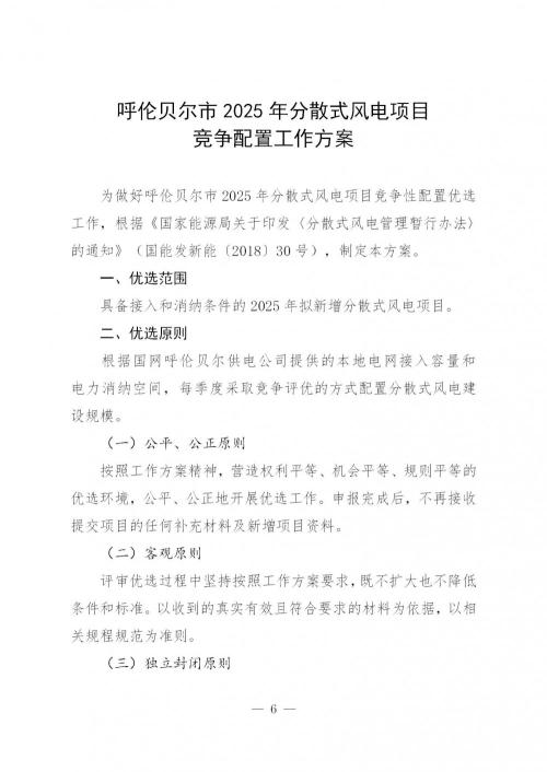 2.呼伦贝尔市2025年分散式风电项目竞争配置工作方案