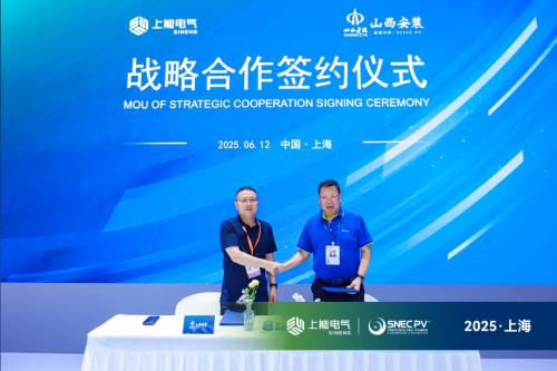 2025 SNEC次日,上能电气股份有限公司与山西省安装集团股份有限公司(以下简称“山西安装集团”)在多年合作的基础上,正式签订战略合作协议。山西安装集团董事长任锐和上能电气董事长吴强出席本次签约仪式,共同见证了这一里程碑时刻。