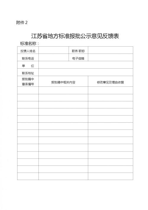 如对公示文本有异议,请于2025年7月22日前向江苏省市场监督管理局书面提出,并提交《江苏省地方标准报批公示意见反馈表》(见附件)。单位提出意见的需加盖单位公章,个人提出意见的需实名并提供联系方式。