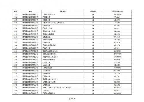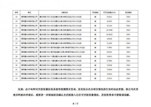 根据公示文件,丰都县10kV线路33个主变全部为绿色,可开放容量651.256MW。126个线路,仅一个黄区,其余全部为绿色,可开放容量为683.855MW。