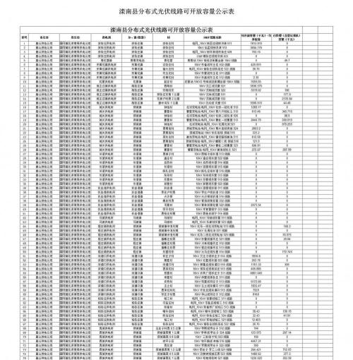 7月4日,河北滦南县发展和改革局发布滦南县分布式光伏线路可开放容量公示表。