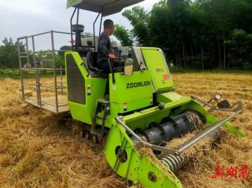 7月13日,长沙市望城区茶亭镇的两万亩早稻开始大面积收割。兴隆种植专业合作社的两台全自动收割机在田间缓缓前行,将金黄的稻浪吞入。在机器内部,水稻粒通过打谷装置与秸秆分离,落入收集箱,秸秆则被送往后方的粉碎装置,被粉碎成细碎的草屑后,再在鼓风机的作用下,抛洒至刚刚收割完的田地里。