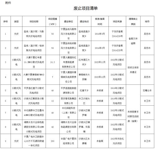 7月17日,宁夏回族自治区发展改革委发布关于废止一批新能源项目的公告。