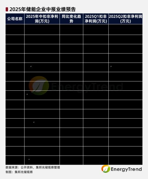 近期,多家储能企业陆续披露2025年中报业绩预告。从核心财务数据来看,15家储能相关企业整体呈现出积极回暖的态势。