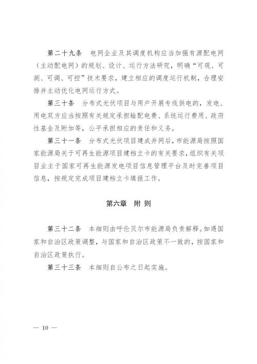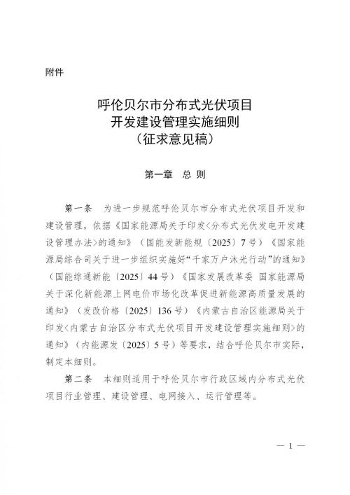附件:《呼伦贝尔市分布式光伏项目开发建设管理实施细则(征求意见稿)》