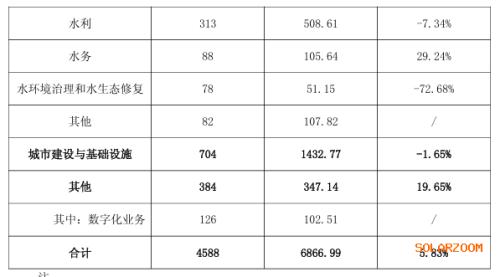 其中:新签水电项目576个,新签合同金额1004.55亿元;抽水蓄能新签项目数量292个,新签合同金额413.81亿元;风电新签项目数量652个,新签合同金额1429.02亿元;太阳能发电新签项目数量616个,新签合同金额1137.43亿元。