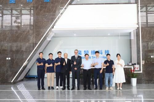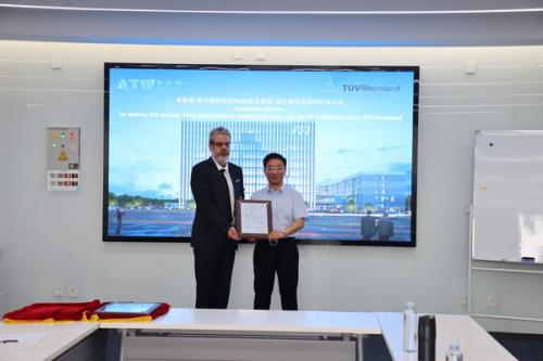 奥特维副总经理武光、国际销售总监Tim Seong,TÜV莱茵大中华区产品服务事业群华东区销售总经理徐澍、产品服务认可与认证经理Gerd Reimann等双方代表出席了颁证仪式。