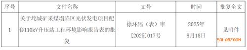 根据建设项目环境影响评价审批程序和建设项目环境影响评价政府信息公开的有关规定,我局对《垞城矿采煤塌陷区光伏发电项目配套110kV升压站工程环境影响报告表》已作出批复。现将该建设项目环境影响报告表的批复予以公示。