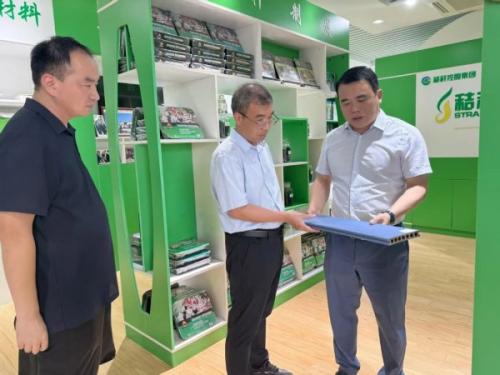 考察团一行首先参观了集团精心打造的秸秆制造环保产品展厅。在参观过程中,彭飞董事长介绍展厅内秸秆环保建材、秸秆环保餐具、秸秆酒店用品、秸秆生物质燃油、秸秆绿色甲醇、秸秆生物质颗粒、秸秆有机肥、秸秆饲料、秸秆炭、秸秆猫砂、秸秆食用菌、秸秆育苗秧盘等各类秸秆制成的环保产品。