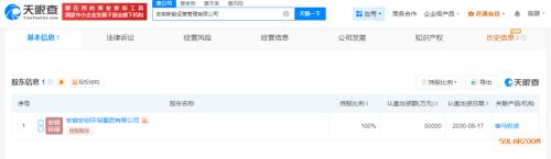 天眼查股东信息显示,该公司由安徽安创环保集团有限公司全资持股,后者为宿州马鞍山投资集团(控股)有限公司全资控股子公司。