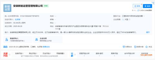 近日,安徽新能运营管理有限公司成立,注册资本5亿元,经营范围包含:储能技术服务;光伏设备及元器件制造;光伏设备及元器件销售等。