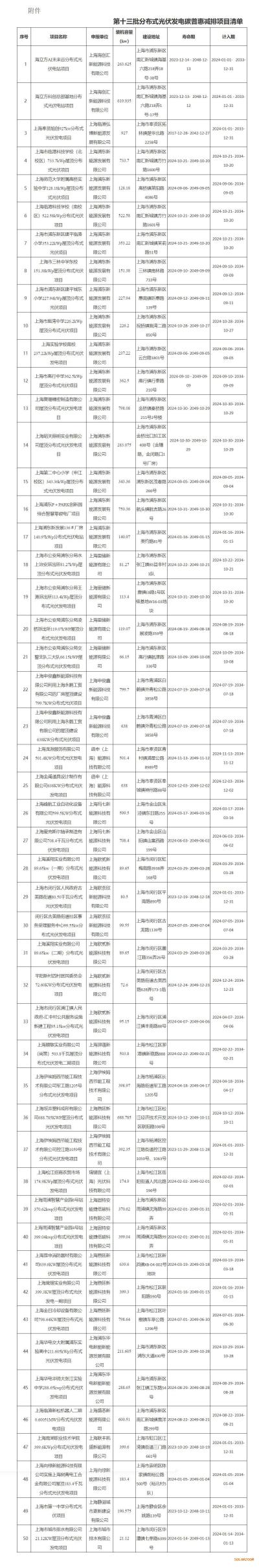 附件:上海碳普惠分布式光伏发电第十三批减排项目清单