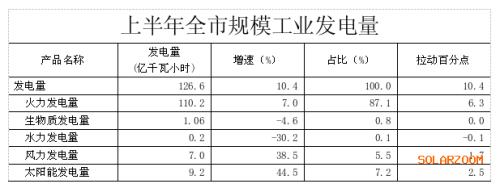 上半年晋城市规模工业累计发电量126.6亿千瓦时,同比增长10.4%。其中:火力发电量110.2亿千瓦时,增长7.0%;太阳能发电量9.2亿千瓦时,增长44.5%;风力发电量7.0亿千瓦时,增长38.5%;水力发电量0.2亿千瓦时,下降30.2%。新能源(风光水电及生物质发电)发电量累计17.4亿千瓦时(占规模工业发电比重为13.8%),增长36.3%,拉动规模工业发电量增长4.0个百分点。(见下表)。