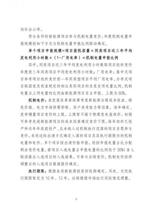 执行期限:根据各类新能源投资回收期确定,风电、光伏执行期限暂定为10年、12年,后续根据市场运行实际情况调整。