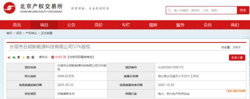 据北京产权交易所披露,2025年9月25日,中国三峡新能源(集团)股份有限公司挂牌转让长垣市云明新能源科技有限公司50%股权,转让底价5696.65万元。