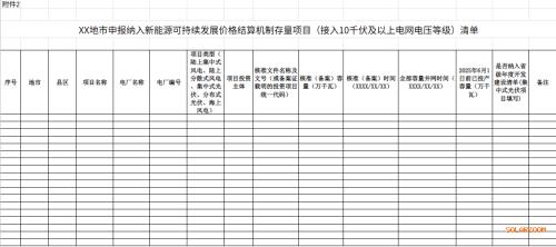 (一)申报审核。各地能源主管部门会同电网企业组织存量项目申报,并协同相关单位开展项目核准(备案)和并网相关信息以及电力业务许可证、电力质量监督报告等材料的审核,将审核通过的项目清单(见附件2)于10月15日(星期三)前报送我委(省能源局)。