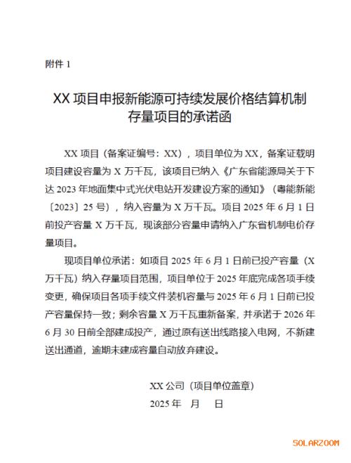 附件:1.XX项目申报新能源可持续发展价格结算机制存量项目的承诺函