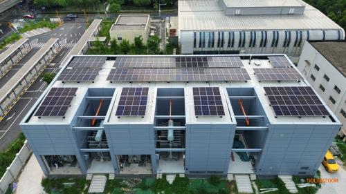 此外,该站为嘉定区首个采用光伏屋面系统的变电站,光伏组件总装机容量达125.45kwp(kwp为千瓦峰值,太阳能光伏组件或系统在标准测试条件下的最大输出功率单位,用于衡量其理论发电能力峰值),预期年发电量达12.5万度绿电,同时光伏组件通过吸收太阳能有效降低夏季建筑物内部温度,提升建筑能效,实现可观的经济效益与社会效益。