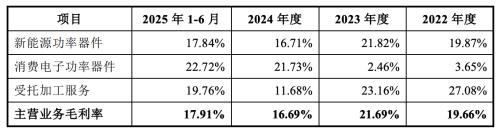 毛利率先升后降也成为首轮问询的重点。对此,钜芯科技回复道,主营业务毛利率及新能源功率器件毛利率整体呈现先升后降的趋势,主要受产品价格、原材料采购价格、产品结构及产能利用率等综合影响所致。