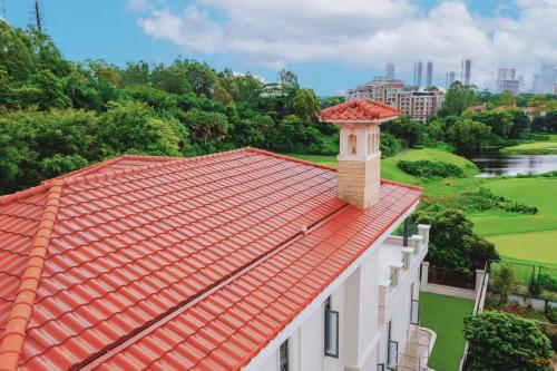 美学曲面光伏瓦外形设计灵感来源于中式传统屋瓦,曲面形态既保留了传统屋瓦的古韵质感,也能适配平屋顶、坡屋顶、弧形屋顶等各类建筑形态,无论是新建住宅还是历史建筑改造,皆不再是依附于建筑的“外挂设备”,而是能与屋顶结构深度融合的“建筑构件”,为光伏建筑一体化(BIPV)从“功能叠加”走向“本质共生”提供了核心技术支撑。
