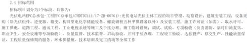 上述4个项目招标范围均是对光伏电站光伏主体工程的项目管理、勘察设计;建筑安装工程;采购(除光伏组件、逆变器、箱变、构网型电化学储能设备、螺旋钢桩五种甲供设备以外)及安装工程等,具体如下: