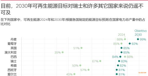 在实现能源目标方面,瑞士的进展同样迟缓。在2022年的一份自我评估报告中,瑞士政府承认,目前,瑞士境内可再生能源发电能力的扩张势头尚未达到实现净零排放目标所必需的水平。