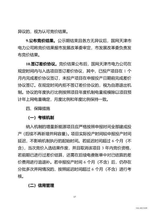 在制定《天津市深化新能源上网电价市场化改革实施方案》的同时,我们还制定了《天津市增量新能源项目机制电量竞价工作实施细则》,对竞价有关政策、竞价程序等进行详细规定,确保增量项目机制电量竞价工作有序开展。