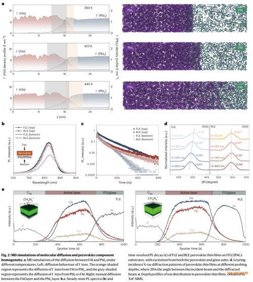 揭示固相结晶动力学机制通过原位表征与分子动力学模拟,明确了钙钛矿从δ中间相向α相转变、并自上而下结晶的动力学过程,为热蒸发工艺优化提供了理论指导。
