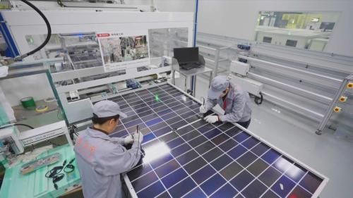 在行业竞争激烈、需求增长放缓的大环境下,安徽还以示范应用促进产品推广,截至2024年底,全省光伏累计装机超过4300万千瓦,规模位列全国第八;以精准服务护航企业“出海”,进一步助力光伏产业高质量发展。在位于阜阳市颍上经开区的安徽赛拉弗生产车间,工人们正在赶制一批发往东南亚的光伏组件订单。今年一季度,受关税波动与国际经济环境的影响,企业的海外订单受到不小的影响。得知企业的烦恼后,当地第一时间上门服务。政策助力不仅让企业降低生产成本,优化生产流程,也进一步加速了企业出海的布局。
