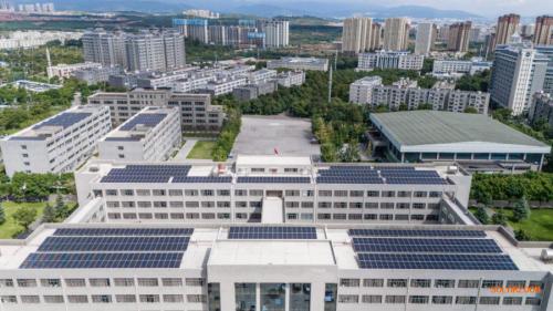 近日,云南工商学院分布式光伏发电项目正式建成并投入使用。该项目通过在图书馆、教学楼等建筑屋顶铺设总计约2500块光伏板,建成装机容量约1568kWp的光伏发电系统,预计年发电量约300万度,将以清洁电力赋能校园绿色低碳发展。