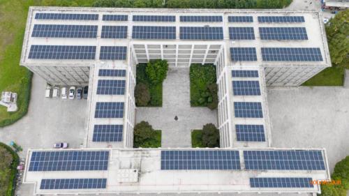 在技术应用层面,系统采用了高效能的635Wp单晶硅光伏组件,其光电转换效率较以往技术提升约20%。通过半导体P-N结技术,组件能够将太阳光能高效转化为直流电能。同时,学校还为整套系统配备了远程监控与智能运维平台,实现了发电情况的实时监测与高效管理,确保系统稳定运行。