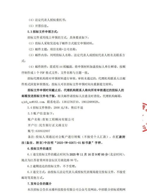 投标截止时间:2025年11月16日9时00分(北京时间)。