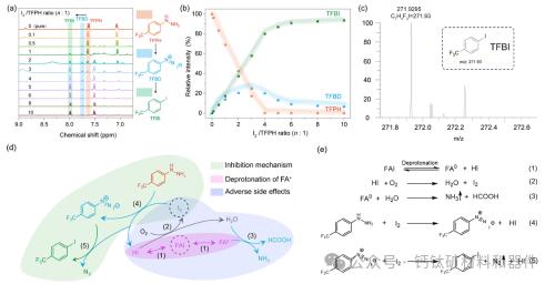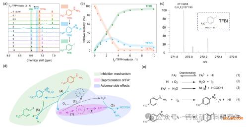该团队系统地研究了富含FA的钙钛矿前驱体溶液在暴露于空气时的快速降解,发现氧化反应,尤其是碘的产生,严重影响了薄膜质量。为了克服这个问题,他们引入了一种多功能添加剂4-(三氟甲基)苯肼(TFPH),它可以有效地稳定钙钛矿液相溶液和固相薄膜。
