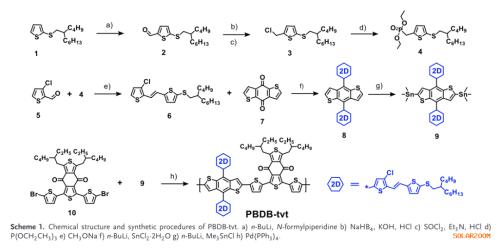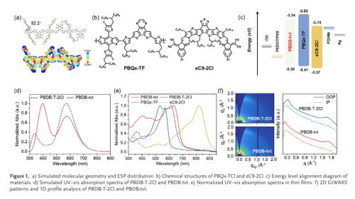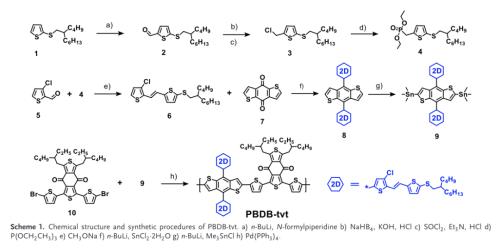 新型二维聚合物设计:通过引入含氯共轭侧链tvt,设计出具有选择性溶解性的聚合物PBDB-tvt,适用于顺序沉积工艺,构建稳定多层结构。