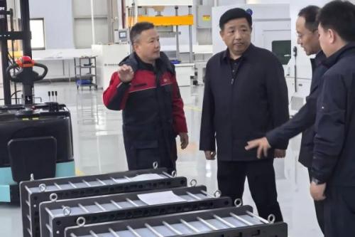 胡勇书记在国润储能管理团队的陪同下,参观了全钒液流电池电堆自动化生产线,详细询问了产品工艺、技术优势等关键问题,并对国润储能在核心技术突破、产业链建设等方面取得的进展表示赞许。