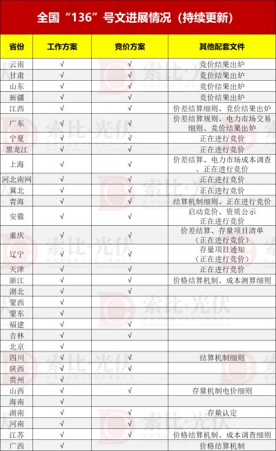 25省发布136号文正式文件:内蒙古(包含蒙东、蒙西)、海南、甘肃、吉林、安徽、重庆、云南、新疆、河北(河北南网、冀北电网)、青海、湖南、天津、黑龙江、湖北、陕西、江苏、广东、山东、福建、浙江、辽宁、宁夏、四川、江西、上海