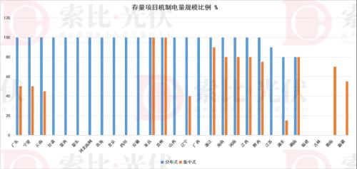 集中式项目机制电量纳入比例整体低于分布式,明确比例的省份中,集中式项目机制电量纳入比例区间为12.5%-100%,跨度较大。