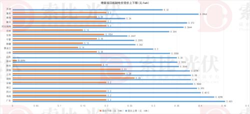明确电价的省份中,增量项目竞价范围整体落在0.0094~0.453元/kWh,省份间差异显著。